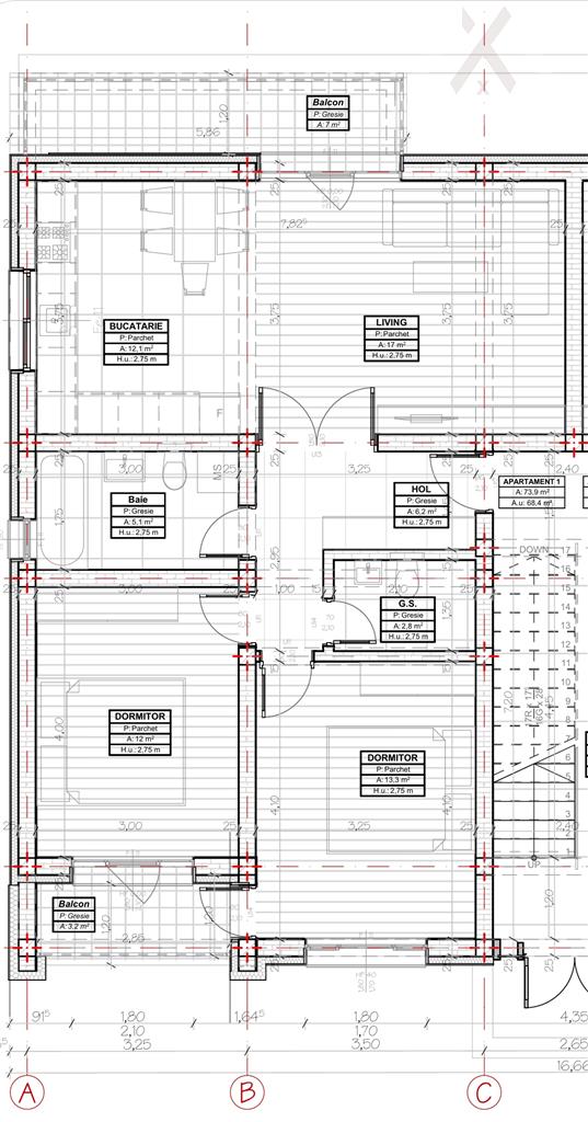 Cu o suprafata utila de 68 mp + 10 mp balcon, fiecare apartament este complet decomandat si compartimentat inteligent: