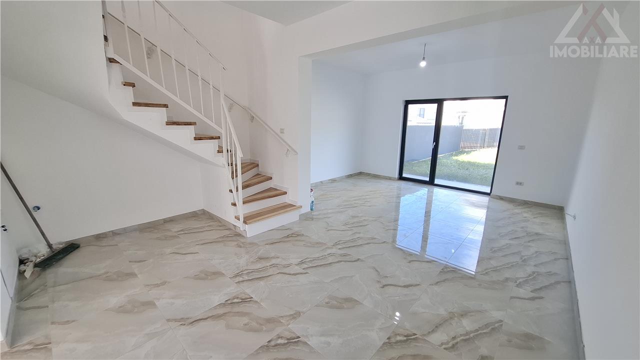 Va prezentam spre vanzare Casa Tip Duplex P+1E, cu 3 camere, S.u. 87 mp, 2 bai, 2 Balcoane si terasa semi-acoperita, avand teren in suprafata de 250 mp fara constructie, situata intr-o zona linistita si accesibila din Valea Lupului, racordata la toate utilitatile: curent electric, gaz, apa curenta si Canalizare tip fosa (canalizarea fiind in curs de executie)