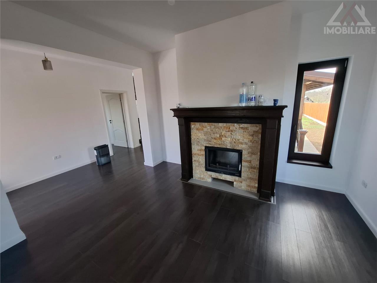 Parter – hol, living cu semineu, bucatarie inchisa cu iesire pe terasa, dormitor, baie, camera tehnica si doua terase acoperite