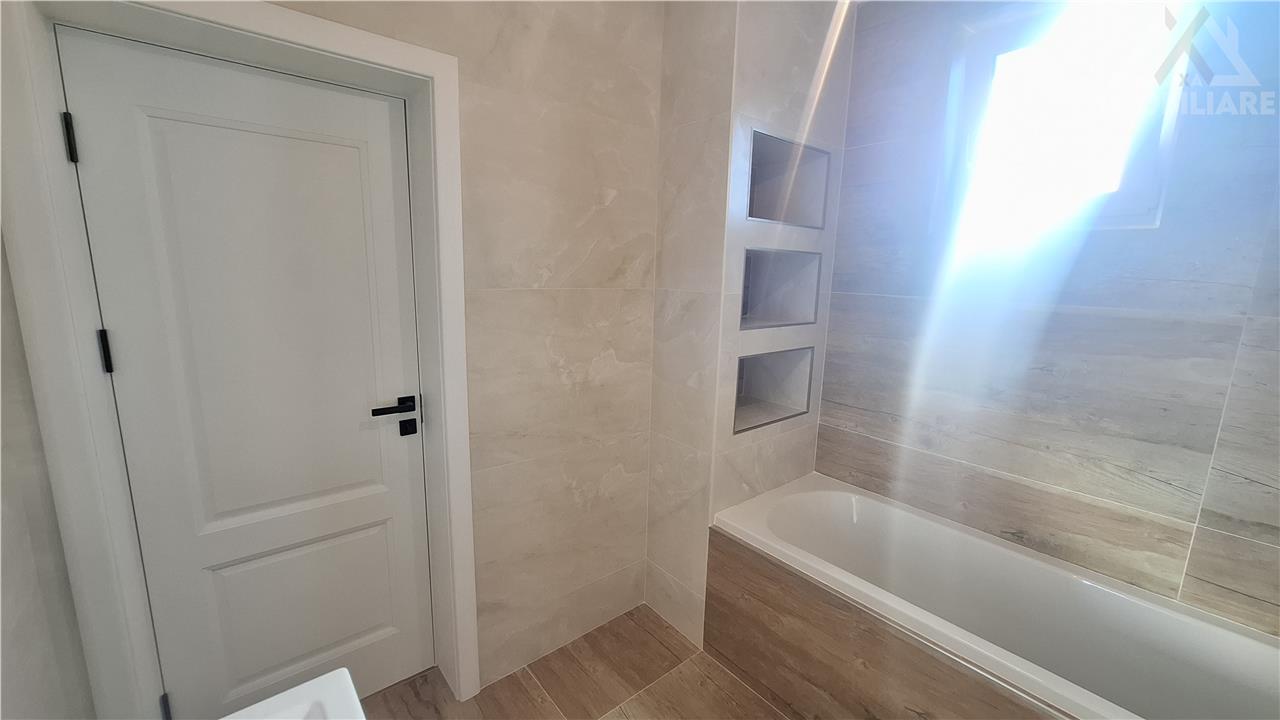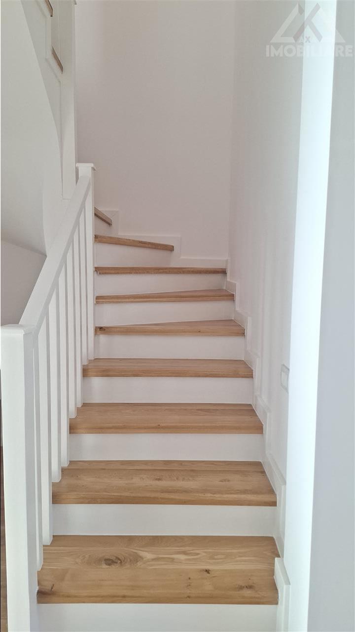Finisaje interioare premium: parchet special pentru incalzirea in pardoseala, gresie si faianta portelanata in bucatarie si bai, glafuri din granit la exterior, scari placate cu lemn de frasin, usi interioare din MDF,aparataje Schneider, baterii Grohe, plinte din duropolimer