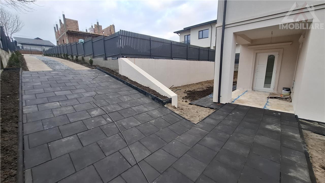 Amenajari exterioare: trotuare pavate, terasa placata cu marmura, doua platforme pentru masina