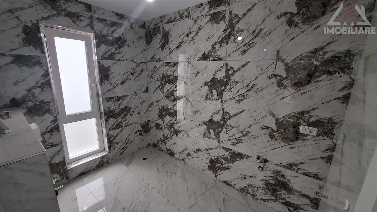 Finisaje interioare premium: parchet special pentru incalzirea in pardoseala, gresie si faianta portelanata in bucatarie si bai, glafuri din travertin la geamuri, interior/exterior, scari placate cu gresie, usi interioare din MDF marca Porta