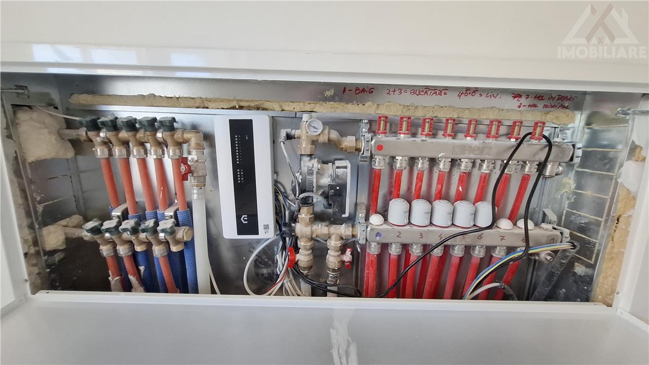 Confort si tehnologie: tamplarie VEKA 7 camere, 3 garnituri si 3 randuri de sticla; incalzire in pardoseala cu termostate individuale in fiecare camera; centrala termica in condensare; distribuitoare de caldura cu grup de amestec parter si etaj