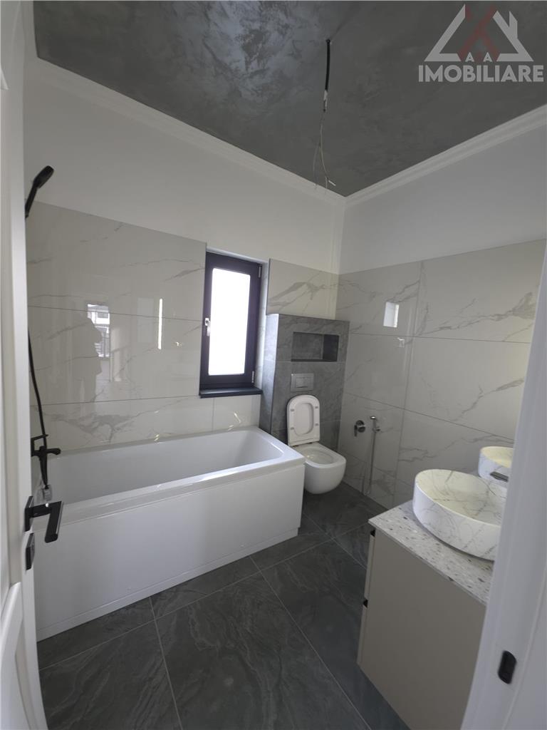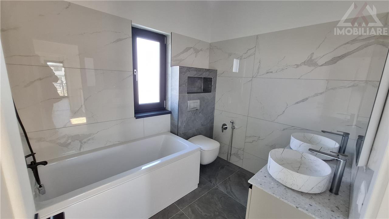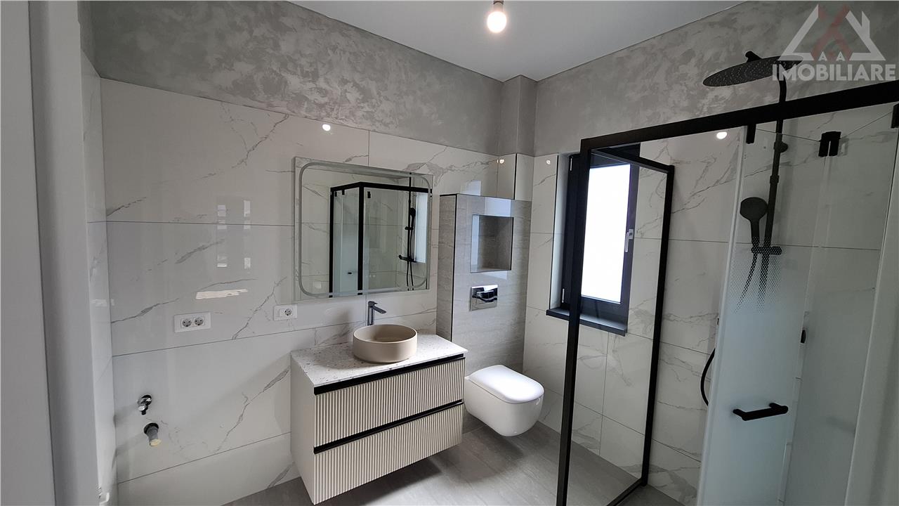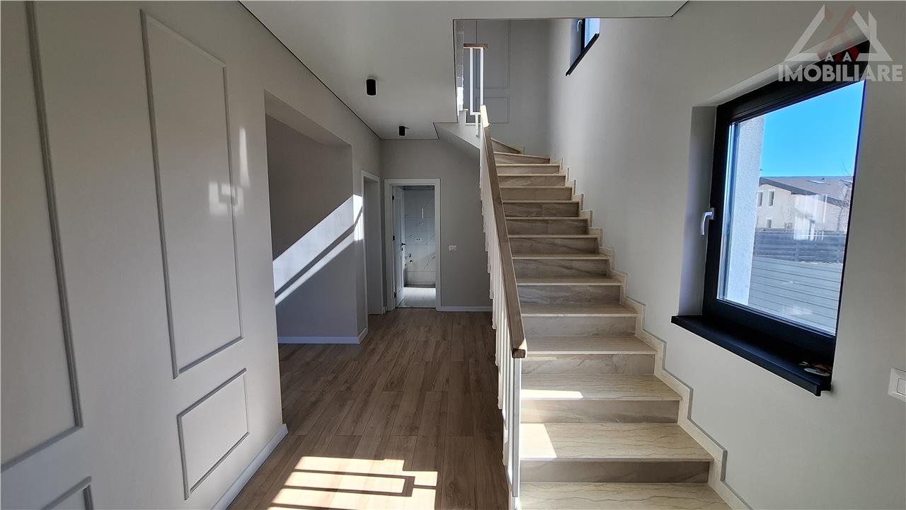 Finisaje premium: tavane extensibile Barisol, parchet special pentru incalzire in pardoseala, gresie si faianta portelanata, scari placate cu travertin, usi MDF, glafuri de granit la exterior